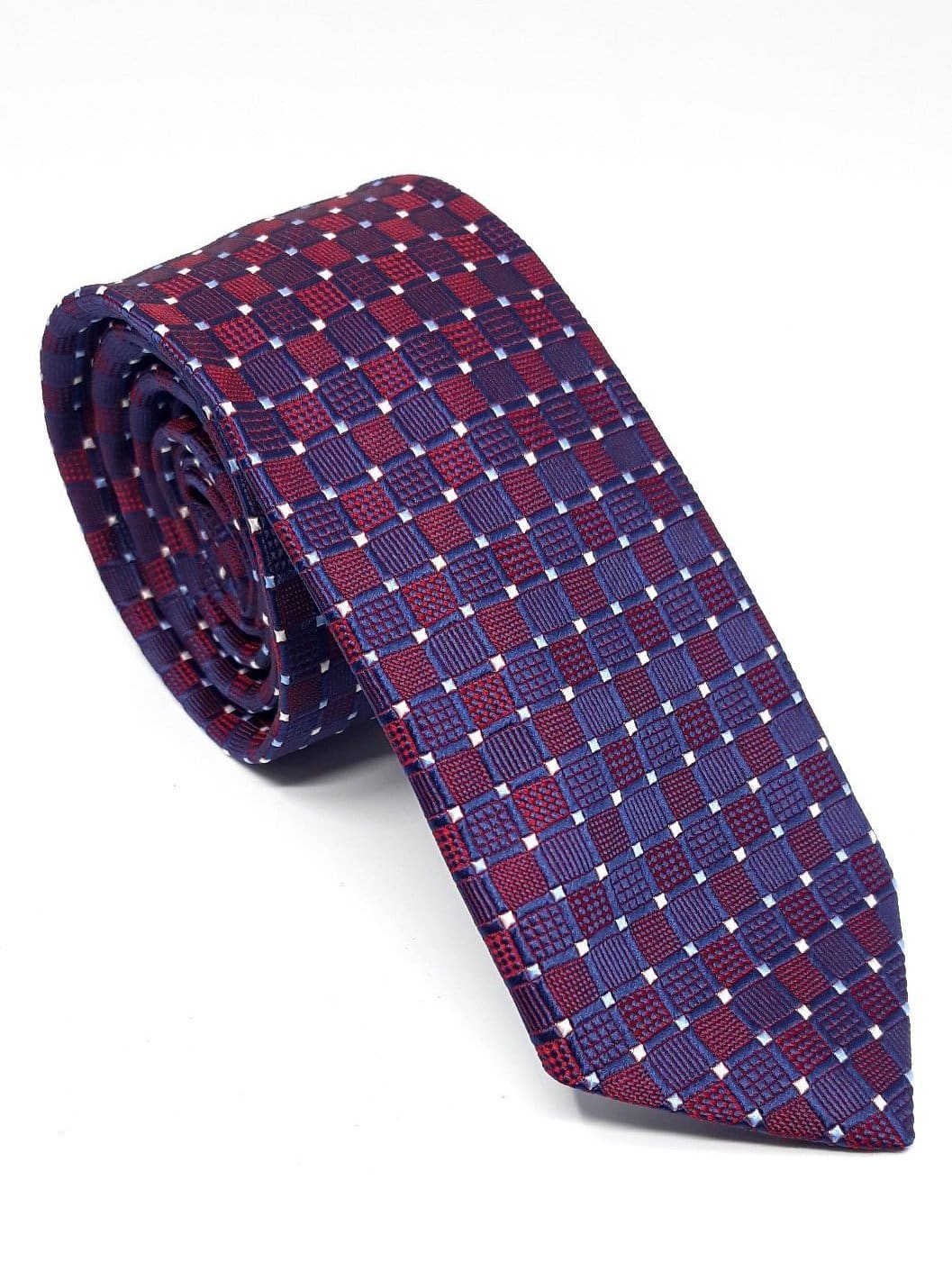Elegancki krawat męski firmy Piotr o klasycznym i modnym kroju, bordowo granatowy w kratę.Krawat o klasycznym i modnym kroju, wykonany ze sztucznego jedwabiu. Jest on bardzo ważnym elementem ubioru, dzięki któremu każdy mężczyzna może wnieść do swojego stroju odrobinę koloru. Kompletując garderobę należy pamiętać, aby krawat tworzył spójny zestaw z marynarką lub koszulą. Jego unikatowy wzór z pewnością spełni swoją funkcję w połączeniu z różnymi tkaninami w kilku wariantach kolorystycznych. Ponadto wyraźne i mocne akcenty zdobnicze dodadzą charakteru i pozwolą wyróżnić się stylem. Krawat można dobrać zarówno do karnacji, garnituru jak i temperamentu.