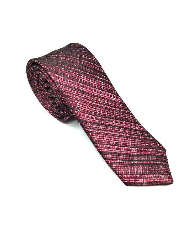 Elegancki krawat męski firmy Piotr o klasycznym i modnym kroju, bordowy w skośne paski. Wykonany ze sztucznego jedwabiu. Jest on bardzo ważnym elementem ubioru, dzięki któremu każdy mężczyzna może wnieść do swojego stroju odrobinę koloru. Kompletując garderobę należy pamiętać, aby krawat tworzył spójny zestaw z marynarką lub koszulą. Jego unikatowy wzór z pewnością spełni swoją funkcję w połączeniu z różnymi tkaninami w kilku wariantach kolorystycznych. Ponadto wyraźne i mocne akcenty zdobnicze dodadzą charakteru i pozwolą wyróżnić się stylem. Krawat można dobrać zarówno do karnacji, garnituru jak i temperamentu.