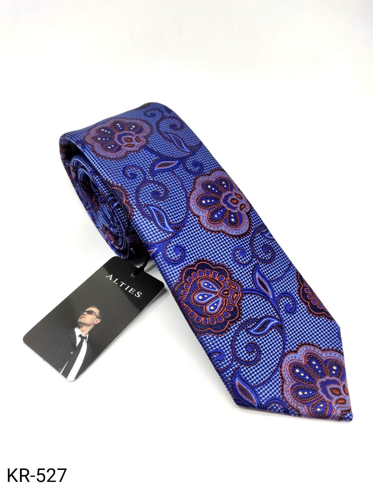 Elegancki krawat męski firmy Alties o klasycznym i modnym kroju, niebieski w kwiaty. Krawat o klasycznym i modnym kroju, wykonany z microfibry. Jest on bardzo ważnym elementem ubioru, dzięki któremu każdy mężczyzna może wnieść do swojego stroju odrobinę koloru. Kompletując garderobę należy pamiętać, aby krawat tworzył spójny zestaw z marynarką lub koszulą. Jego unikatowy wzór z pewnością spełni swoją funkcję w połączeniu z różnymi tkaninami w kilku wariantach kolorystycznych. Ponadto wyraźne i mocne akcenty zdobnicze dodadzą charakteru i pozwolą wyróżnić się stylem. Krawat można dobrać zarówno do karnacji, garnituru jak i temperamentu.