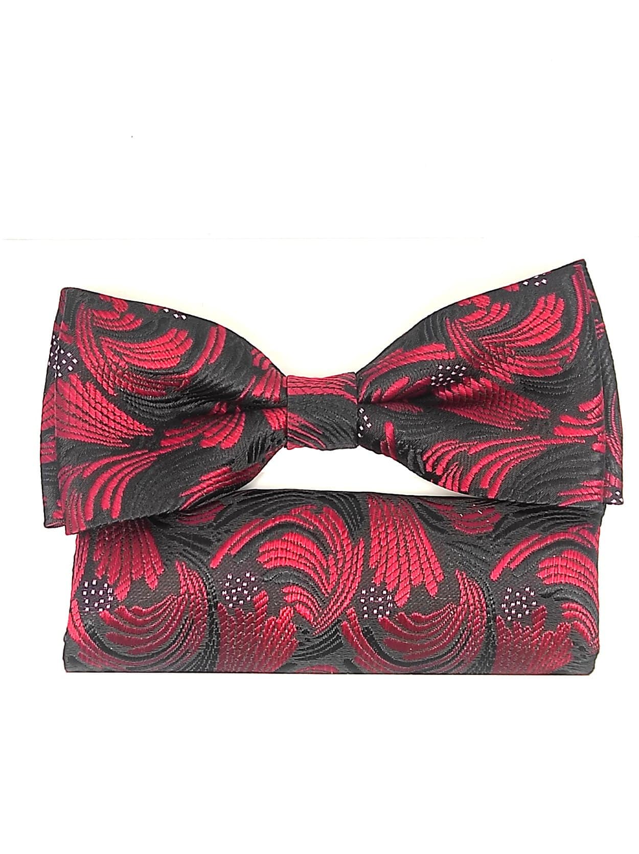 Unikatowa mucha w zestawie z poszetką czarna w bordowe kreski.
