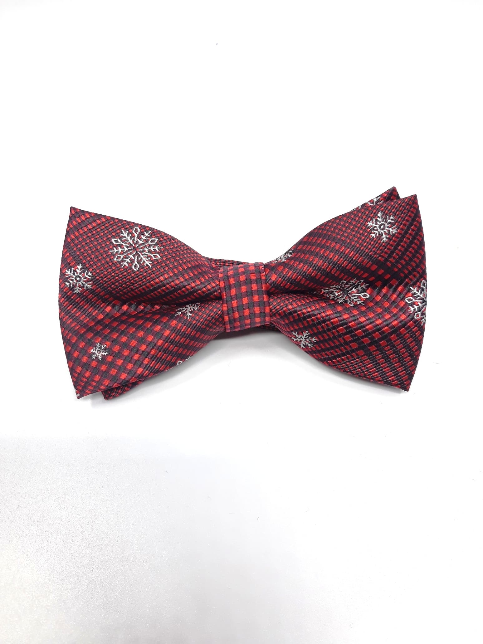 Unikatowa mucha męska świąteczna w kolorze bordo w ciemna kratę i gwiazdki.