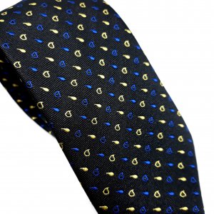 Elegancki Krawat Czarny w Żółto Niebieski Wzór