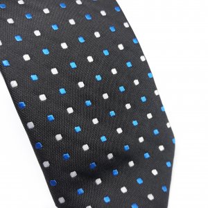 Elegancki Krawat Czarny w Żółto Niebieski Wzór