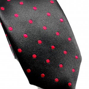 Elegancki Krawat Czarny w Czerwone Kropki