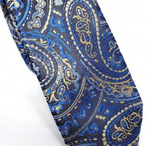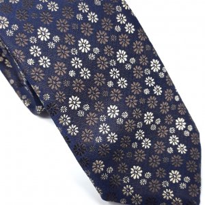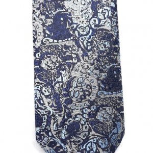 Elegancki Krawat Szary Granatowo Niebieski Wzór
