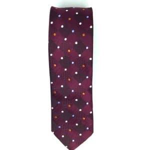 Elegancki Krawat Popielaty Czerwono Białe Kropki