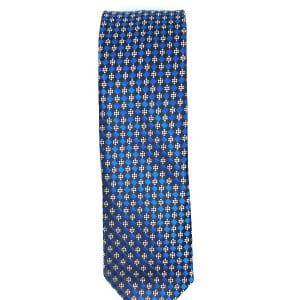 Elegancki Krawat Granatowo Niebieski Kwiatki