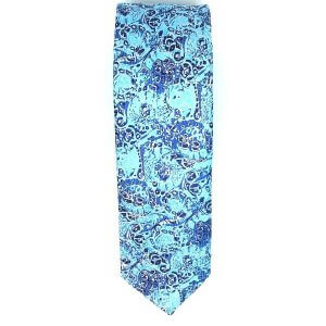 Elegancki Krawat Granatowo Niebieski Kwiatki