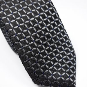 Elegancki Krawat Czarny Szare Kółka
