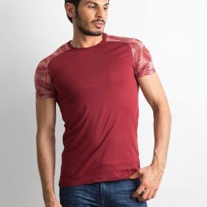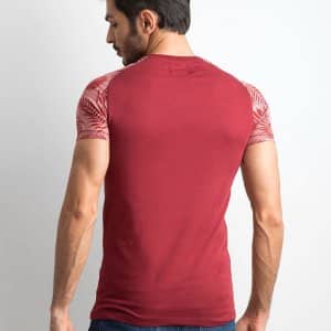 Bordowy t-shirt męski z nadrukiem na rękawach