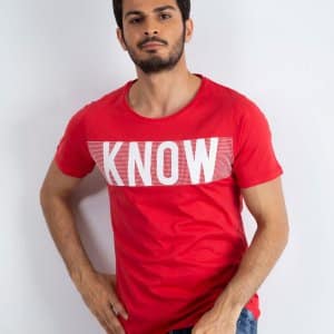 Wzór: czerwony z napisem Know
