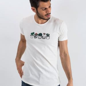 Ecru t-shirt męski Embroider
