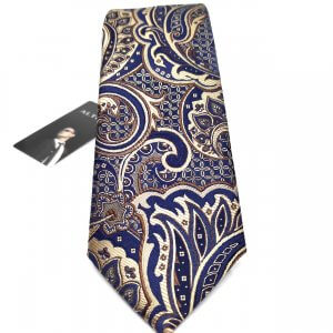 Elegancki Krawat Granatowy Beżowy Wzór