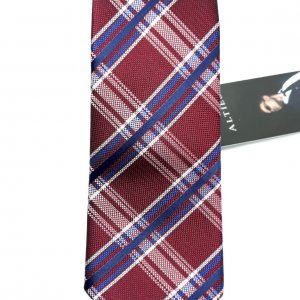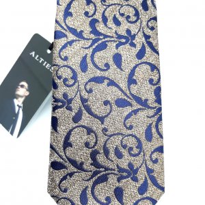 Elegancki Krawat Alties Brązowy Granatowy Wzór