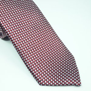 • Elegancki Krawat Bordowy Biała Szachownica