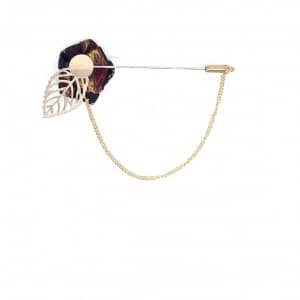 Pin Przypinka Kwiatek Bordo Złoto łańcuszek