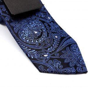 Elegancki Krawat Czarny Niebieski Turecki Wzór