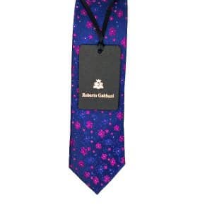 Elegancki Krawat Granatowy Różowe Kwiatuszki