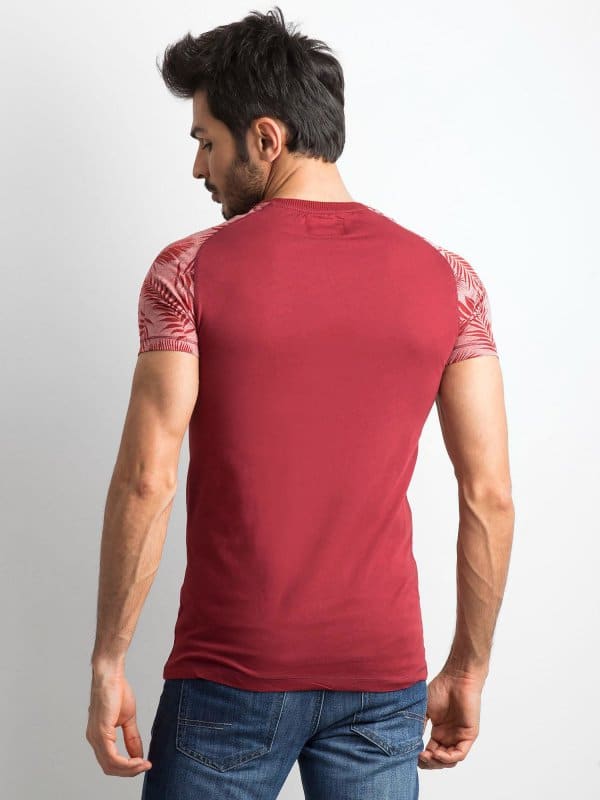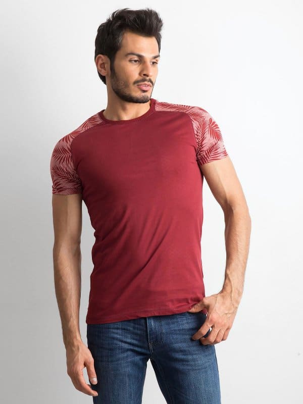 Bordowy t-shirt męski z nadrukiem na rękawach