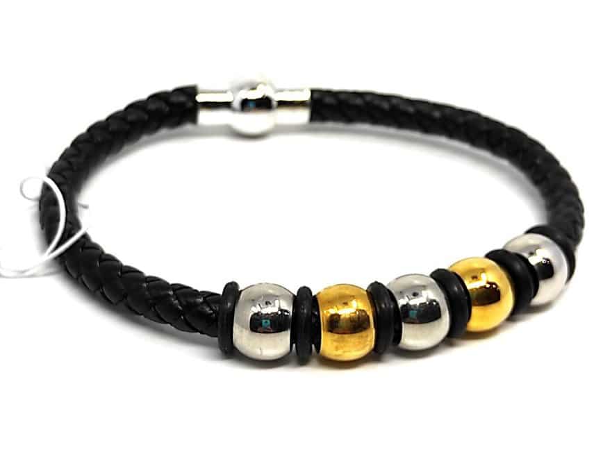 Bransoletka męska pleciona jest bardzo istotnym dodatkiem dla każdego eleganckiego mężczyzny. Zapinana na magnes. Idealnie będzie się prezentowała na dłoni. Widniejące na niej złoto-srebrne okrągłe beadsy sprawiają, że każdy gentelman będzie chciał ją nosić. Są bardzo uniwersalne. Z pewnością pasują do każdej stylizacji. Dodają efektywności, gracji oraz wdzięku. Bez wątpienia to wspaniały pomysł na prezent dla każdego nowoczesnego mężczyzny, który idzie za najnowszymi trendami modowymi.