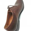 Eleganckie, skórzane męskie pantofle wykonane z ciemno brązowej , wysokogatunkowej skóry pokrytej wyczuwalną w dotyku teksturą i odcinającą się kolorystycznie sznurówką. Buty mają spiczaste noski więc obuwie prezentuje się stylowo i elegancko natomiast miękka, skórzana, znakomicie wyprofilowana wkładka wewnątrz obuwia zapewnia wygodę podczas chodzenia.