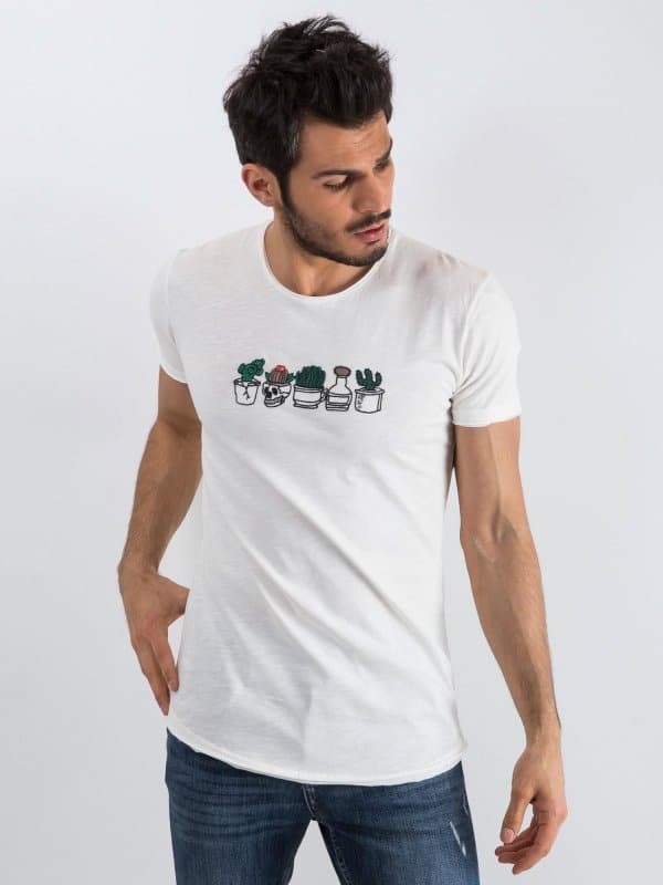 Napisz pierwszą opinię o „Ecru t-shirt męski Embroider Bawełniany”