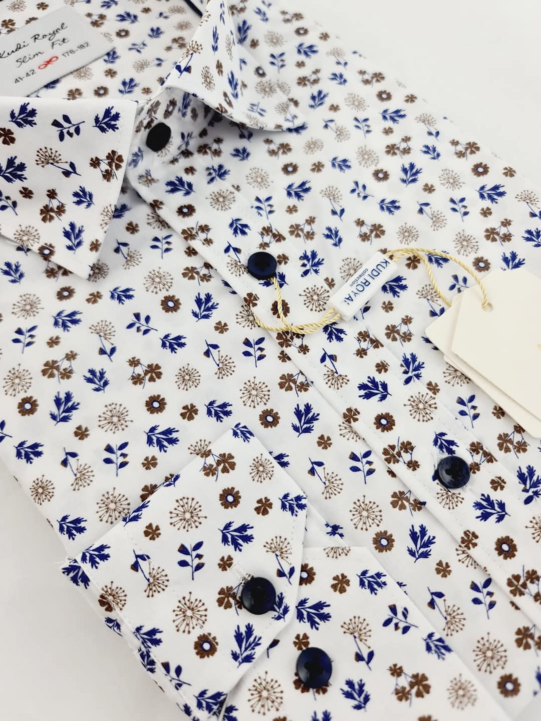 Elegancka Koszula z najnowszej kolekcji firmy Kudi Biała w Brązowe Kwiatki.