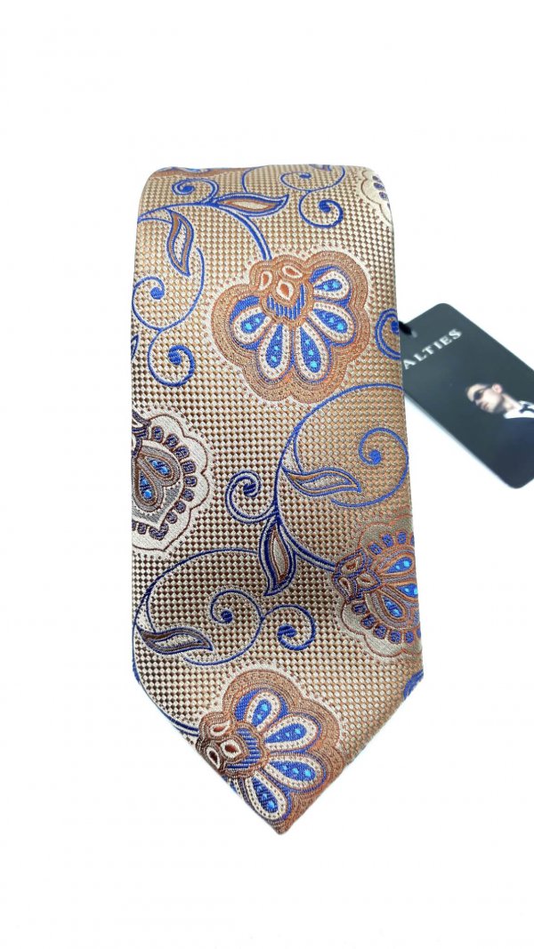 Elegancki krawat męski firmy Alties o klasycznym i modnym kroju, brązowy w granatowy wzór. Krawat o klasycznym i modnym kroju, wykonany z microfibry. Jest on bardzo ważnym elementem ubioru, dzięki któremu każdy mężczyzna może wnieść do swojego stroju odrobinę koloru. Kompletując garderobę należy pamiętać, aby krawat tworzył spójny zestaw z marynarką lub koszulą. Jego unikatowy wzór z pewnością spełni swoją funkcję w połączeniu z różnymi tkaninami w kilku wariantach kolorystycznych. Ponadto wyraźne i mocne akcenty zdobnicze dodadzą charakteru i pozwolą wyróżnić się stylem. Krawat można dobrać zarówno do karnacji, garnituru jak i temperamentu.