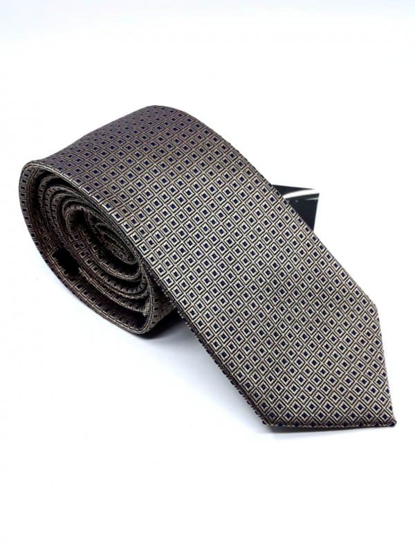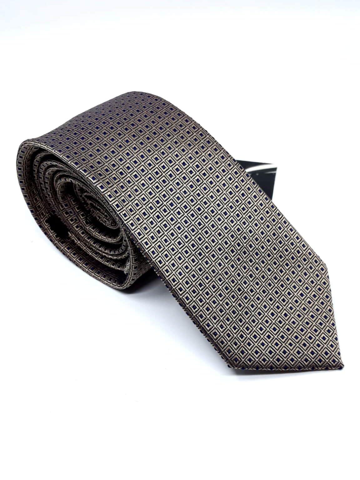 Elegancki krawat męski firmy Alties o klasycznym i modnym kroju, brązowy w granatowe kwadraty. Krawat o klasycznym i modnym kroju, wykonany z microfibry. Jest on bardzo ważnym elementem ubioru, dzięki któremu każdy mężczyzna może wnieść do swojego stroju odrobinę koloru. Kompletując garderobę należy pamiętać, aby krawat tworzył spójny zestaw z marynarką lub koszulą. Jego unikatowy wzór z pewnością spełni swoją funkcję w połączeniu z różnymi tkaninami w kilku wariantach kolorystycznych. Ponadto wyraźne i mocne akcenty zdobnicze dodadzą charakteru i pozwolą wyróżnić się stylem. Krawat można dobrać zarówno do karnacji, garnituru jak i temperamentu.