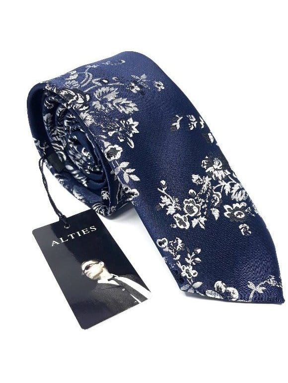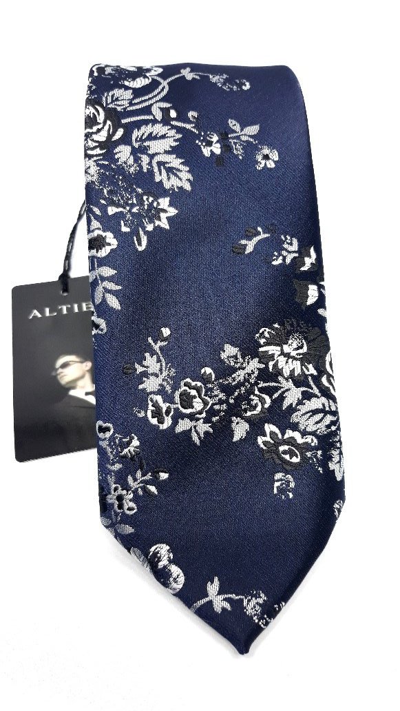 Elegancki krawat męski firmy Alties o klasycznym i modnym kroju w kolorze granatowym w białe kwiaty.Krawat o klasycznym i modnym kroju, wykonany ze sztucznego jedwabiu. Jest on bardzo ważnym elementem ubioru, dzięki któremu każdy mężczyzna może wnieść do swojego stroju odrobinę koloru. Kompletując garderobę należy pamiętać, aby krawat tworzył spójny zestaw z marynarką lub koszulą. Jego unikatowy wzór z pewnością spełni swoją funkcję w połączeniu z różnymi tkaninami w kilku wariantach kolorystycznych. Ponadto wyraźne i mocne akcenty zdobnicze dodadzą charakteru i pozwolą wyróżnić się stylem. Krawat można dobrać zarówno do karnacji, garnituru jak i temperamentu.