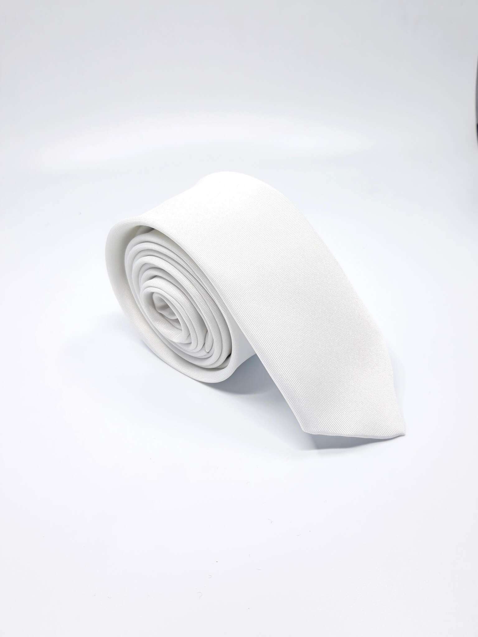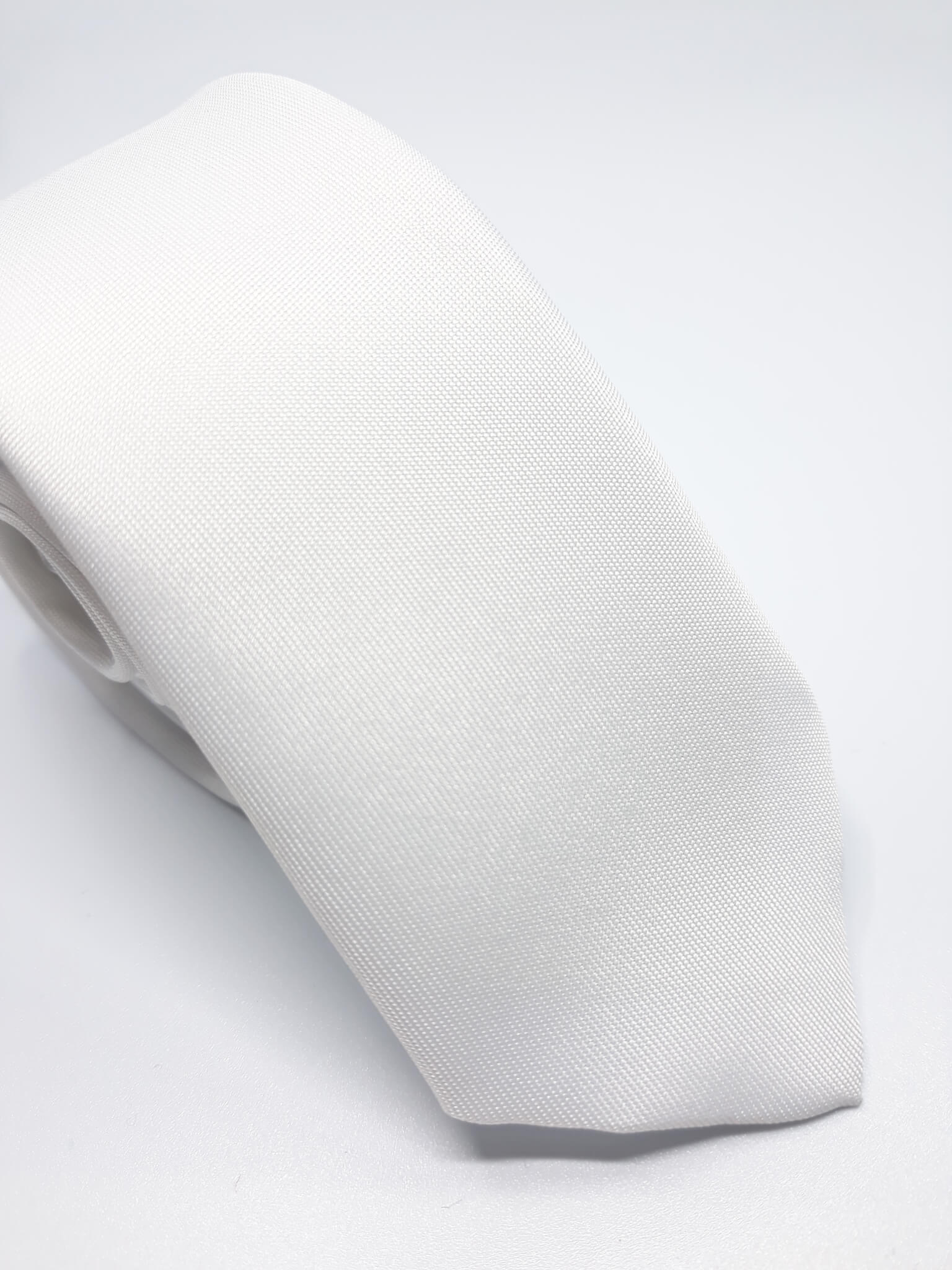 Elegancki krawat biały o klasycznym i modnym kroju-śledzik. Jest on bardzo ważnym elementem ubioru, dzięki któremu każdy mężczyzna może wnieść do swojego stroju odrobinę koloru. Kompletując garderobę należy pamiętać, aby krawat tworzył spójny zestaw z marynarką lub koszulą. Krawat można dobrać zarówno do karnacji, garnituru jak i temperamentu.