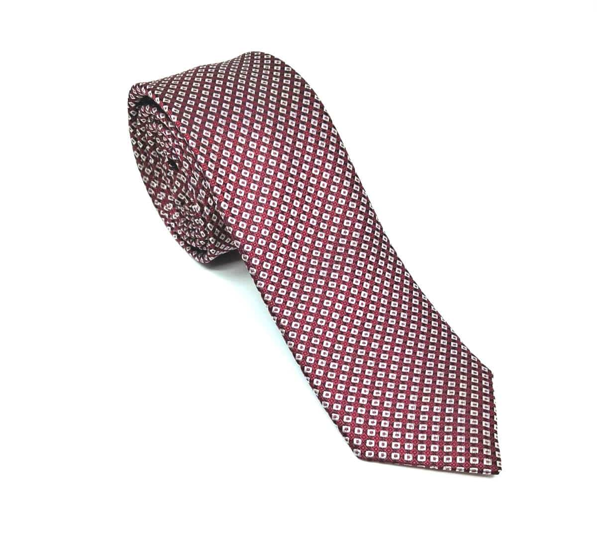 Elegancki krawat męski firmy Piotr o klasycznym i modnym kroju w kolorze bordo w biały wzór. Krawat o klasycznym i modnym kroju, wykonany ze sztucznego jedwabiu. Jest on bardzo ważnym elementem ubioru, dzięki któremu każdy mężczyzna może wnieść do swojego stroju odrobinę koloru. Kompletując garderobę należy pamiętać, aby krawat tworzył spójny zestaw z marynarką lub koszulą. Jego unikatowy wzór z pewnością spełni swoją funkcję w połączeniu z różnymi tkaninami w kilku wariantach kolorystycznych. Ponadto wyraźne i mocne akcenty zdobnicze dodadzą charakteru i pozwolą wyróżnić się stylem. Krawat można dobrać zarówno do karnacji, garnituru jak i temperamentu.