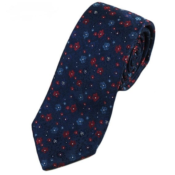 Elegancki krawat męski firmy Alties o klasycznym i modnym kroju,granatowy w bordowe kwiatuszki. Krawat o klasycznym i modnym kroju, wykonany z microfibry. Jest on bardzo ważnym elementem ubioru, dzięki któremu każdy mężczyzna może wnieść do swojego stroju odrobinę koloru. Kompletując garderobę należy pamiętać, aby krawat tworzył spójny zestaw z marynarką lub koszulą. Jego unikatowy wzór z pewnością spełni swoją funkcję w połączeniu z różnymi tkaninami w kilku wariantach kolorystycznych. Ponadto wyraźne i mocne akcenty zdobnicze dodadzą charakteru i pozwolą wyróżnić się stylem. Krawat można dobrać zarówno do karnacji, garnituru jak i temperamentu.