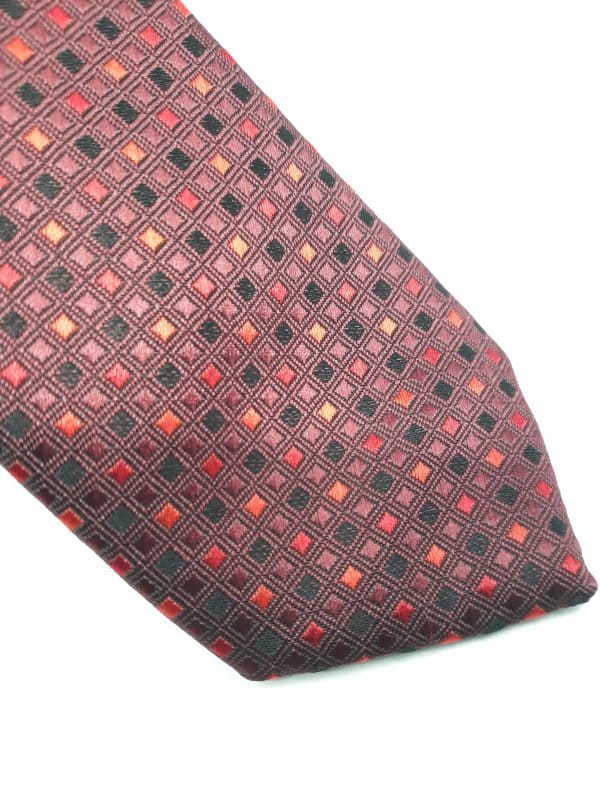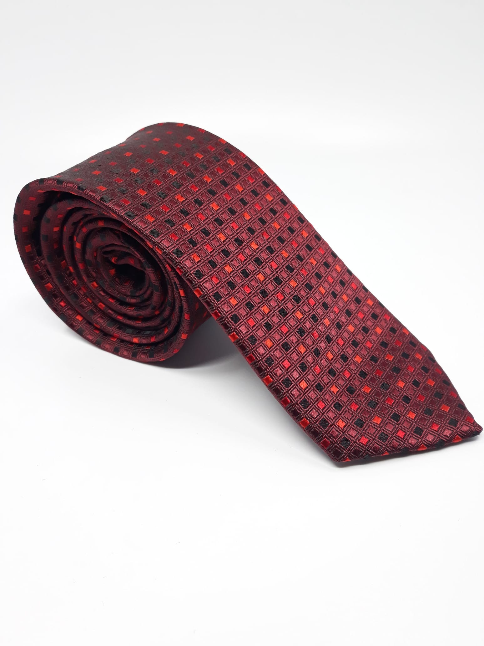 Elegancki krawat męski firmy Piotr o klasycznym i modnym kroju, bordowy w kwadraty. Krawat o klasycznym i modnym kroju, wykonany ze sztucznego jedwabiu. Jest on bardzo ważnym elementem ubioru, dzięki któremu każdy mężczyzna może wnieść do swojego stroju odrobinę koloru. Kompletując garderobę należy pamiętać, aby krawat tworzył spójny zestaw z marynarką lub koszulą. Jego unikatowy wzór z pewnością spełni swoją funkcję w połączeniu z różnymi tkaninami w kilku wariantach kolorystycznych. Ponadto wyraźne i mocne akcenty zdobnicze dodadzą charakteru i pozwolą wyróżnić się stylem. Krawat można dobrać zarówno do karnacji, garnituru jak i temperamentu.