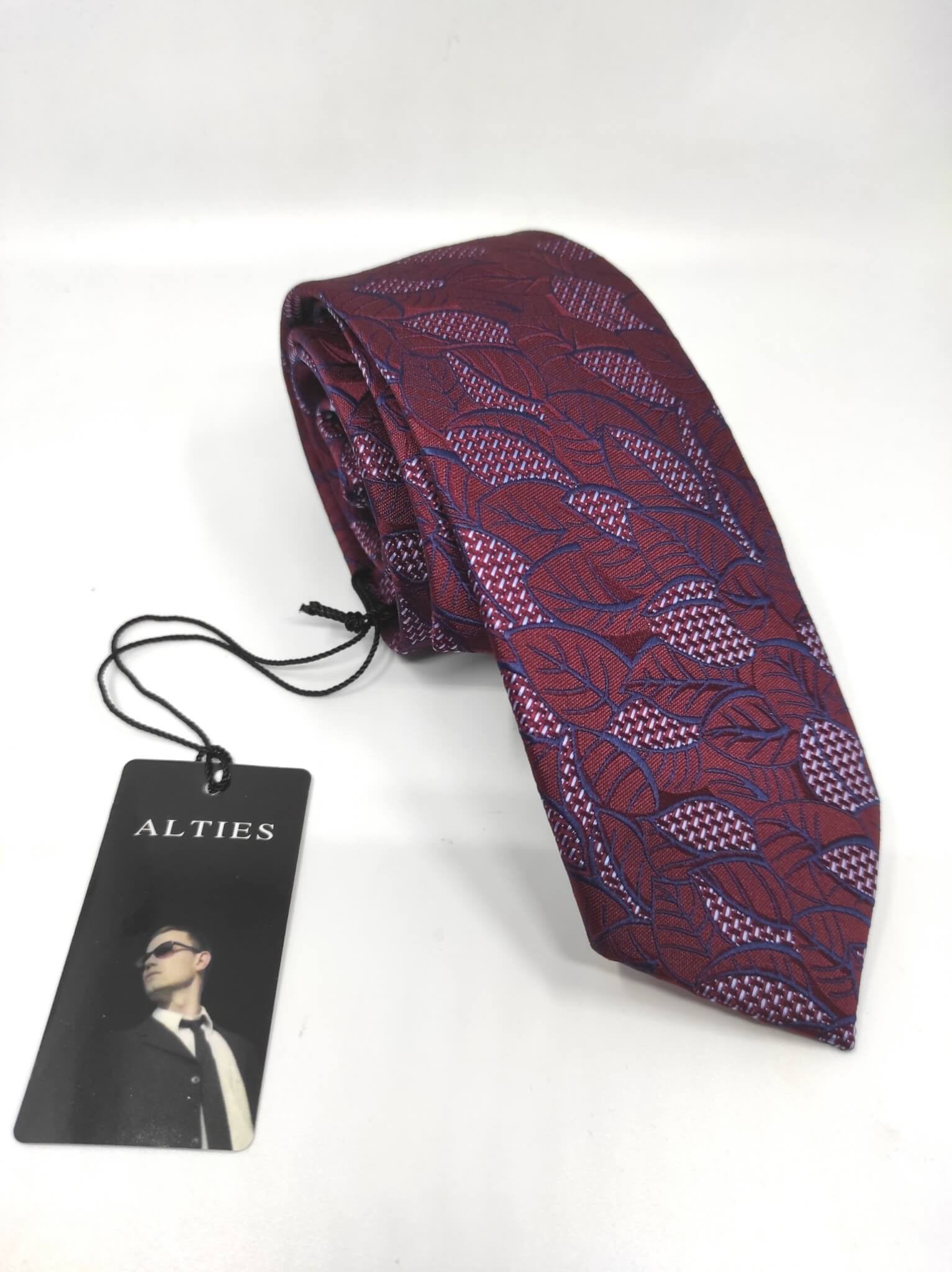 Elegancki krawat męski firmy Alties o klasycznym i modnym kroju,bordowy liście. Krawat o klasycznym i modnym kroju, wykonany z microfibry. Jest on bardzo ważnym elementem ubioru, dzięki któremu każdy mężczyzna może wnieść do swojego stroju odrobinę koloru. Kompletując garderobę należy pamiętać, aby krawat tworzył spójny zestaw z marynarką lub koszulą. Jego unikatowy wzór z pewnością spełni swoją funkcję w połączeniu z różnymi tkaninami w kilku wariantach kolorystycznych. Ponadto wyraźne i mocne akcenty zdobnicze dodadzą charakteru i pozwolą wyróżnić się stylem. Krawat można dobrać zarówno do karnacji, garnituru jak i temperamentu.