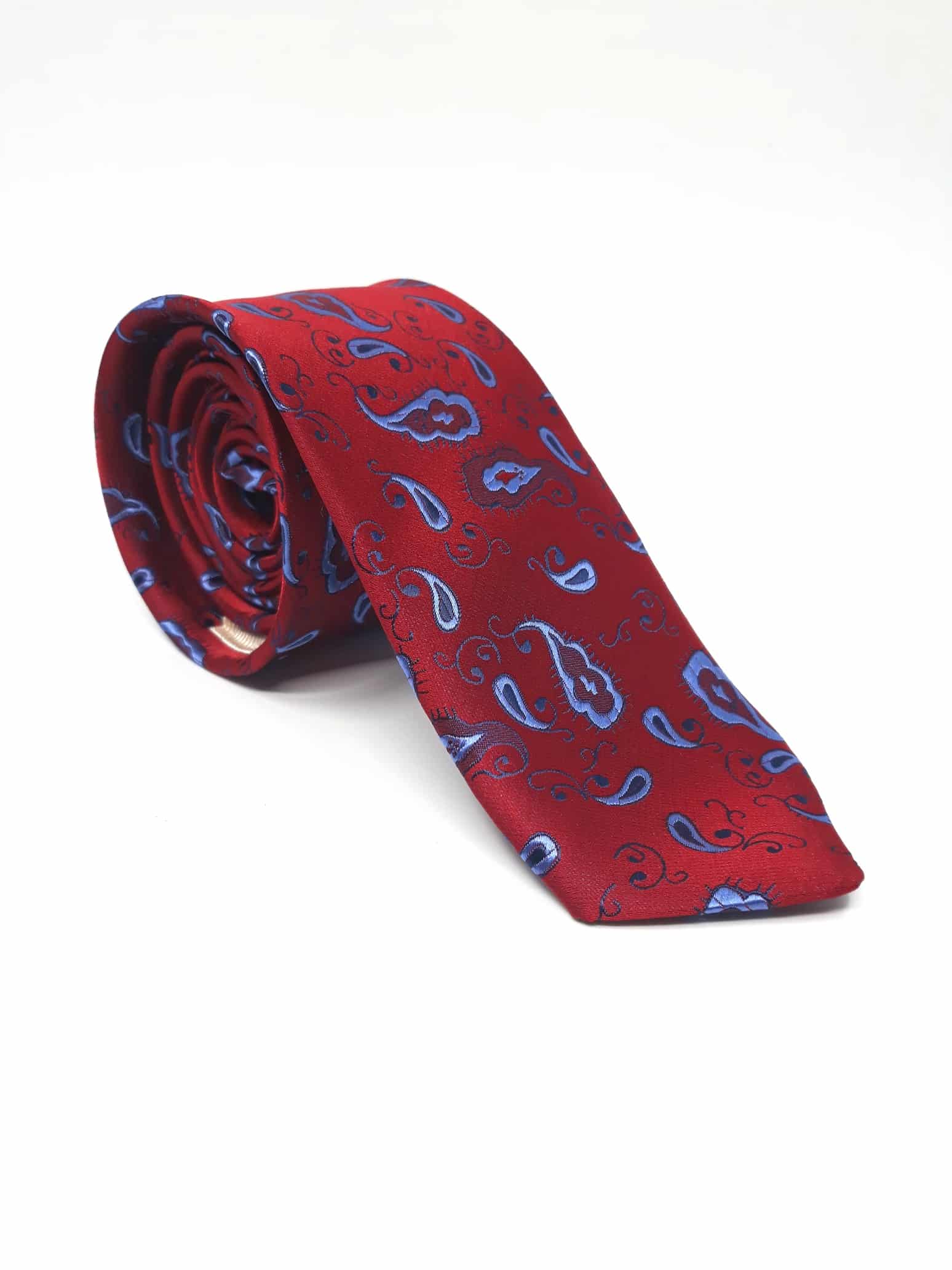 Elegancki Krawat Bordowy w Niebieski Ciekawy Wzór