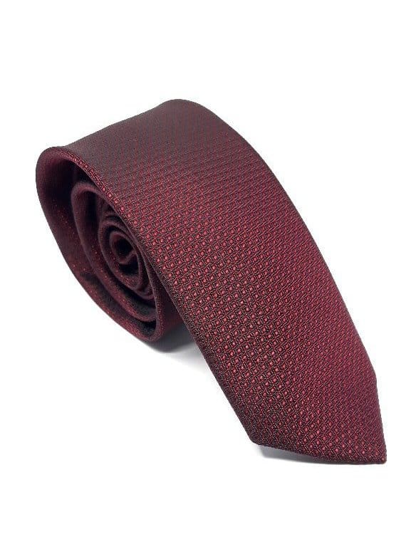 Elegancki krawat męski firmy Piotr o klasycznym i modnym kroju, bordowy we wzorek maleńkiej granatowej kropeczki.Krawat o klasycznym i modnym kroju, wykonany ze sztucznego jedwabiu. Jest on bardzo ważnym elementem ubioru, dzięki któremu każdy mężczyzna może wnieść do swojego stroju odrobinę koloru. Kompletując garderobę należy pamiętać, aby krawat tworzył spójny zestaw z marynarką lub koszulą. Jego unikatowy wzór z pewnością spełni swoją funkcję w połączeniu z różnymi tkaninami w kilku wariantach kolorystycznych. Ponadto wyraźne i mocne akcenty zdobnicze dodadzą charakteru i pozwolą wyróżnić się stylem. Krawat można dobrać zarówno do karnacji, garnituru jak i temperamentu.