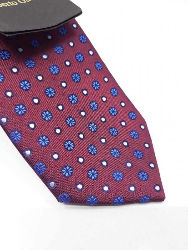 Elegancki krawat męski firmy Roberto Gabbani o klasycznym i modnym kroju, bordowy z motywem kwiatowym. Jest to ponadczasowy i obowiązkowy element męskiej stylizacji nie tylko odświętnej, w dodatku ten najbardziej wyrazisty. Kompletując garderobę należy pamiętać, aby krawat tworzył spójny zestaw z marynarką lub koszulą. Jego unikatowy wzór z pewnością spełni swoją funkcję w połączeniu z gładkimi tkaninami w kilku wariantach kolorystycznych. Ponadto wyraźne i mocne akcenty zdobnicze dodadzą charakteru i pozwolą wyróżnić się stylem. Krawat ten zdecydowanie będzie też idealnym prezentem dla mężczyzny.