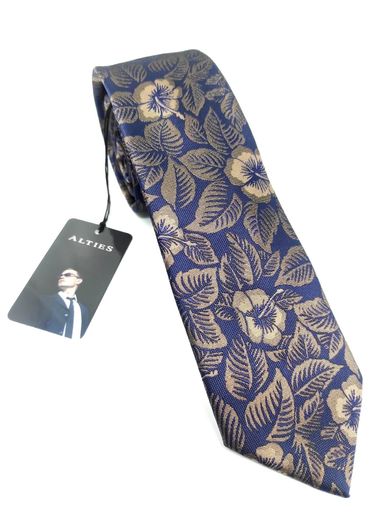 Elegancki krawat męski firmy Alties o klasycznym i modnym kroju,granatowy w brązowe kwiaty. Krawat o klasycznym i modnym kroju, wykonany z microfibry. Jest on bardzo ważnym elementem ubioru, dzięki któremu każdy mężczyzna może wnieść do swojego stroju odrobinę koloru. Kompletując garderobę należy pamiętać, aby krawat tworzył spójny zestaw z marynarką lub koszulą. Jego unikatowy wzór z pewnością spełni swoją funkcję w połączeniu z różnymi tkaninami w kilku wariantach kolorystycznych. Ponadto wyraźne i mocne akcenty zdobnicze dodadzą charakteru i pozwolą wyróżnić się stylem. Krawat można dobrać zarówno do karnacji, garnituru jak i temperamentu.