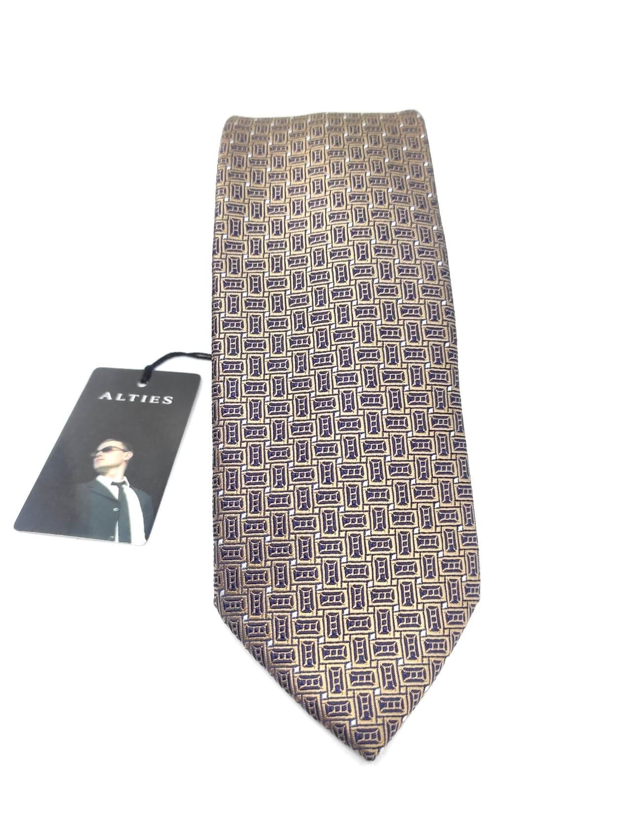 Elegancki krawat męski firmy Alties o klasycznym i modnym kroju,brązowy we wzór. Krawat o klasycznym i modnym kroju, wykonany z microfibry. Jest on bardzo ważnym elementem ubioru, dzięki któremu każdy mężczyzna może wnieść do swojego stroju odrobinę koloru. Kompletując garderobę należy pamiętać, aby krawat tworzył spójny zestaw z marynarką lub koszulą. Jego unikatowy wzór z pewnością spełni swoją funkcję w połączeniu z różnymi tkaninami w kilku wariantach kolorystycznych. Ponadto wyraźne i mocne akcenty zdobnicze dodadzą charakteru i pozwolą wyróżnić się stylem. Krawat można dobrać zarówno do karnacji, garnituru jak i temperamentu.