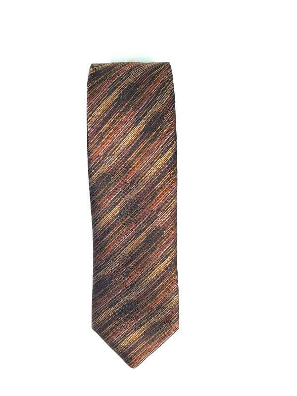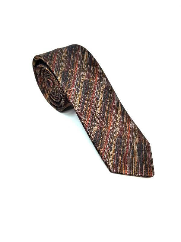 Elegancki krawat męski firmy Piotr o klasycznym i modnym kroju, brązowy w kolorowy wzorek. Wykonany ze sztucznego jedwabiu. Jest on bardzo ważnym elementem ubioru, dzięki któremu każdy mężczyzna może wnieść do swojego stroju odrobinę koloru. Kompletując garderobę należy pamiętać, aby krawat tworzył spójny zestaw z marynarką lub koszulą. Jego unikatowy wzór z pewnością spełni swoją funkcję w połączeniu z różnymi tkaninami w kilku wariantach kolorystycznych. Ponadto wyraźne i mocne akcenty zdobnicze dodadzą charakteru i pozwolą wyróżnić się stylem. Krawat można dobrać zarówno do karnacji, garnituru jak i temperamentu.