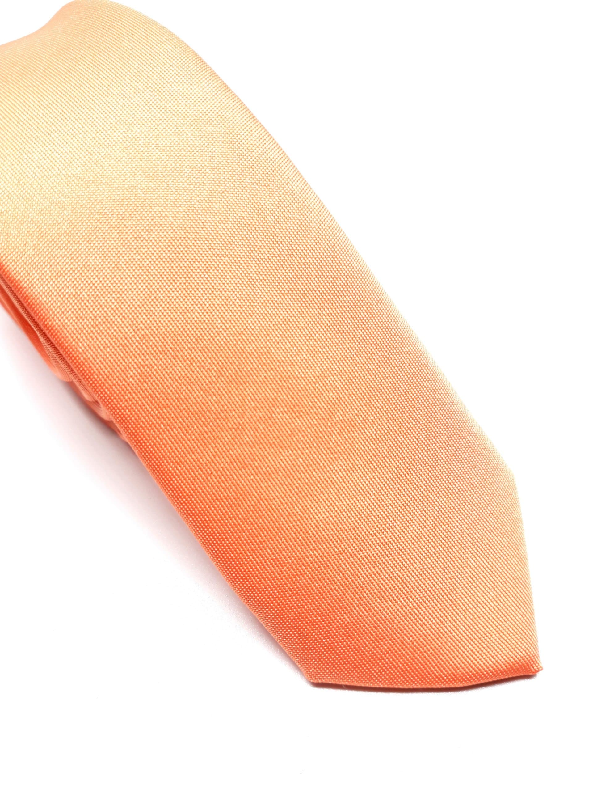 Elegancki krawat brzoskwiniowy o klasycznym i modnym kroju-śledź. Jest on bardzo ważnym elementem ubioru, dzięki któremu każdy mężczyzna może wnieść do swojego stroju odrobinę koloru. Kompletując garderobę należy pamiętać, aby krawat tworzył spójny zestaw z marynarką lub koszulą. Krawat można dobrać zarówno do karnacji, garnituru jak i temperamentu.