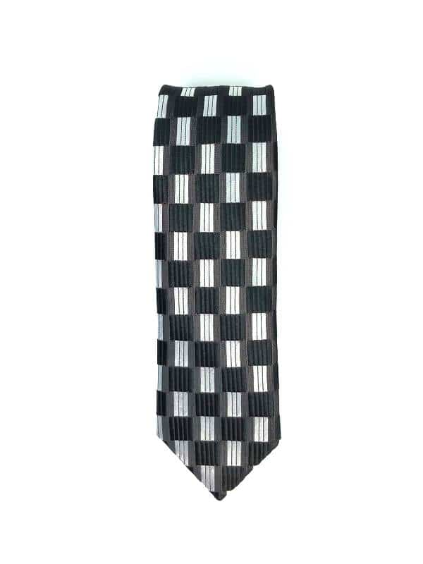 Elegancki krawat męski firmy Piotr, czarno biały. Krawat o klasycznym i modnym kroju, wykonany ze sztucznego jedwabiu. Jest on bardzo ważnym elementem ubioru, dzięki któremu każdy mężczyzna może wnieść do swojego stroju odrobinę koloru. Kompletując garderobę należy pamiętać, aby krawat tworzył spójny zestaw z marynarką lub koszulą. Jego unikatowy wzór z pewnością spełni swoją funkcję w połączeniu z różnymi tkaninami w kilku wariantach kolorystycznych. Ponadto wyraźne i mocne akcenty zdobnicze dodadzą charakteru i pozwolą wyróżnić się stylem. Krawat można dobrać zarówno do karnacji, garnituru jak i temperamentu.