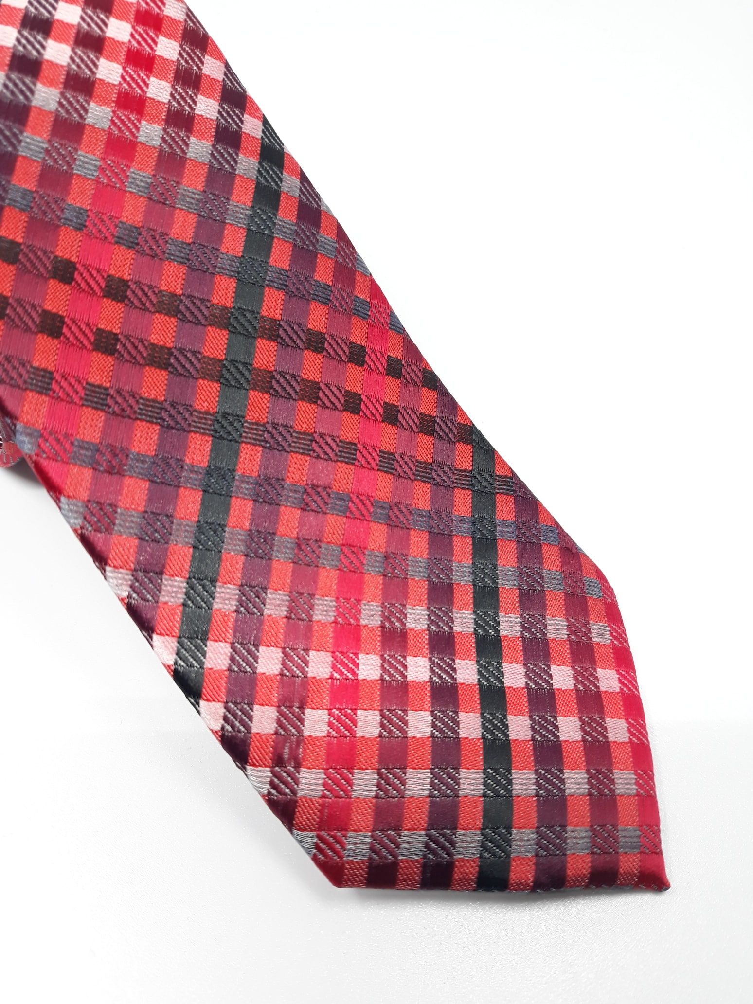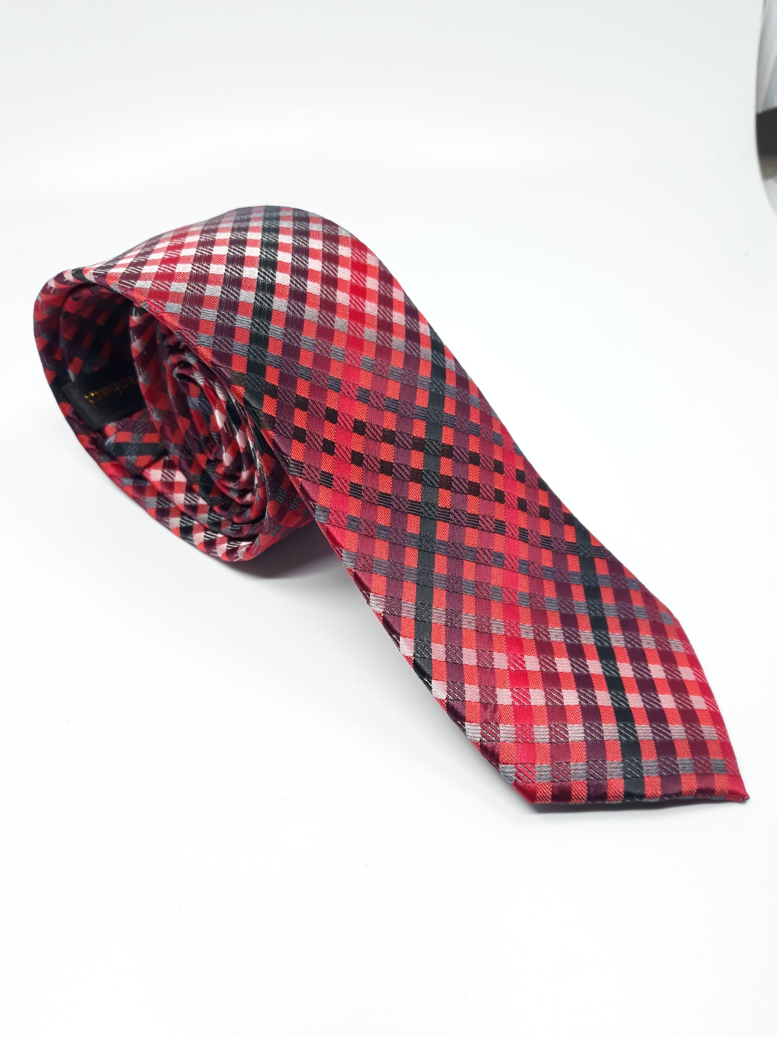 Elegancki krawat męski firmy Roberto Gabbani o klasycznym i modnym kroju, czarno czerwony w kratę. Krawat o klasycznym i modnym kroju, wykonany z miękkiej microfibry. Jest on bardzo ważnym elementem ubioru, dzięki któremu każdy mężczyzna może wnieść do swojego stroju odrobinę koloru. Kompletując garderobę należy pamiętać, aby krawat tworzył spójny zestaw z marynarką lub koszulą. Jego unikatowy wzór z pewnością spełni swoją funkcję w połączeniu z różnymi tkaninami w kilku wariantach kolorystycznych. Ponadto wyraźne i mocne akcenty zdobnicze dodadzą charakteru i pozwolą wyróżnić się stylem. Krawat można dobrać zarówno do karnacji, garnituru jak i temperamentu.