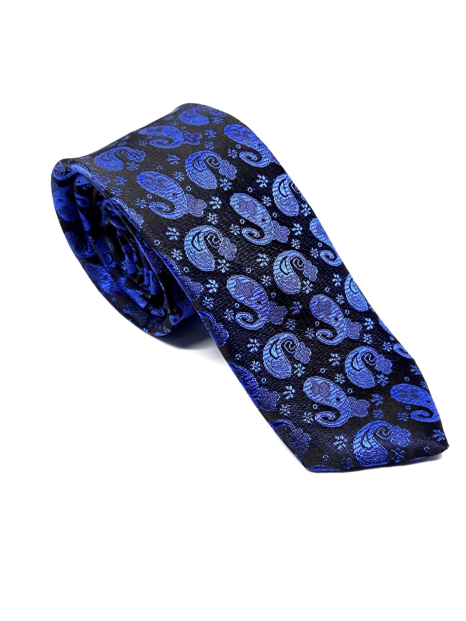 Elegancki krawat męski firmy Piotr o klasycznym i modnym kroju, czarny w chabrowy turecki wzór. Krawat o klasycznym i modnym kroju, wykonany ze sztucznego jedwabiu. Jest on bardzo ważnym elementem ubioru, dzięki któremu każdy mężczyzna może wnieść do swojego stroju odrobinę koloru. Kompletując garderobę należy pamiętać, aby krawat tworzył spójny zestaw z marynarką lub koszulą. Jego unikatowy wzór z pewnością spełni swoją funkcję w połączeniu z różnymi tkaninami w kilku wariantach kolorystycznych. Ponadto wyraźne i mocne akcenty zdobnicze dodadzą charakteru i pozwolą wyróżnić się stylem. Krawat można dobrać zarówno do karnacji, garnituru jak i temperamentu.