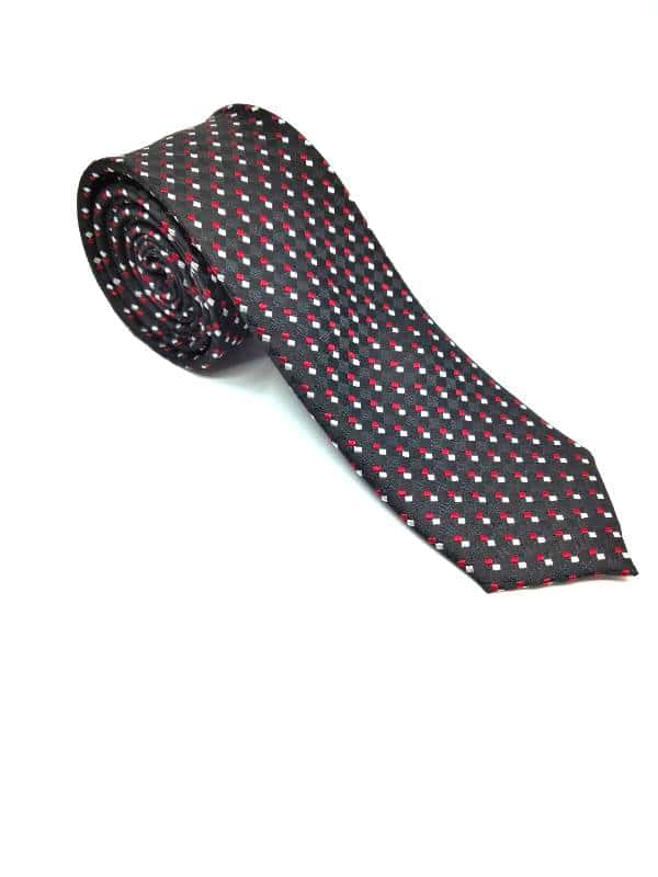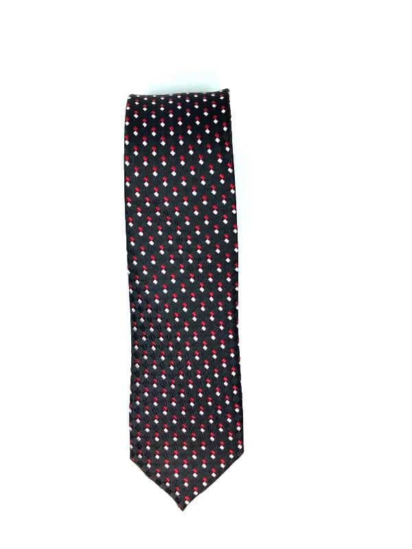 Elegancki Krawat Czarny Czerwono Białe Kwadraciki