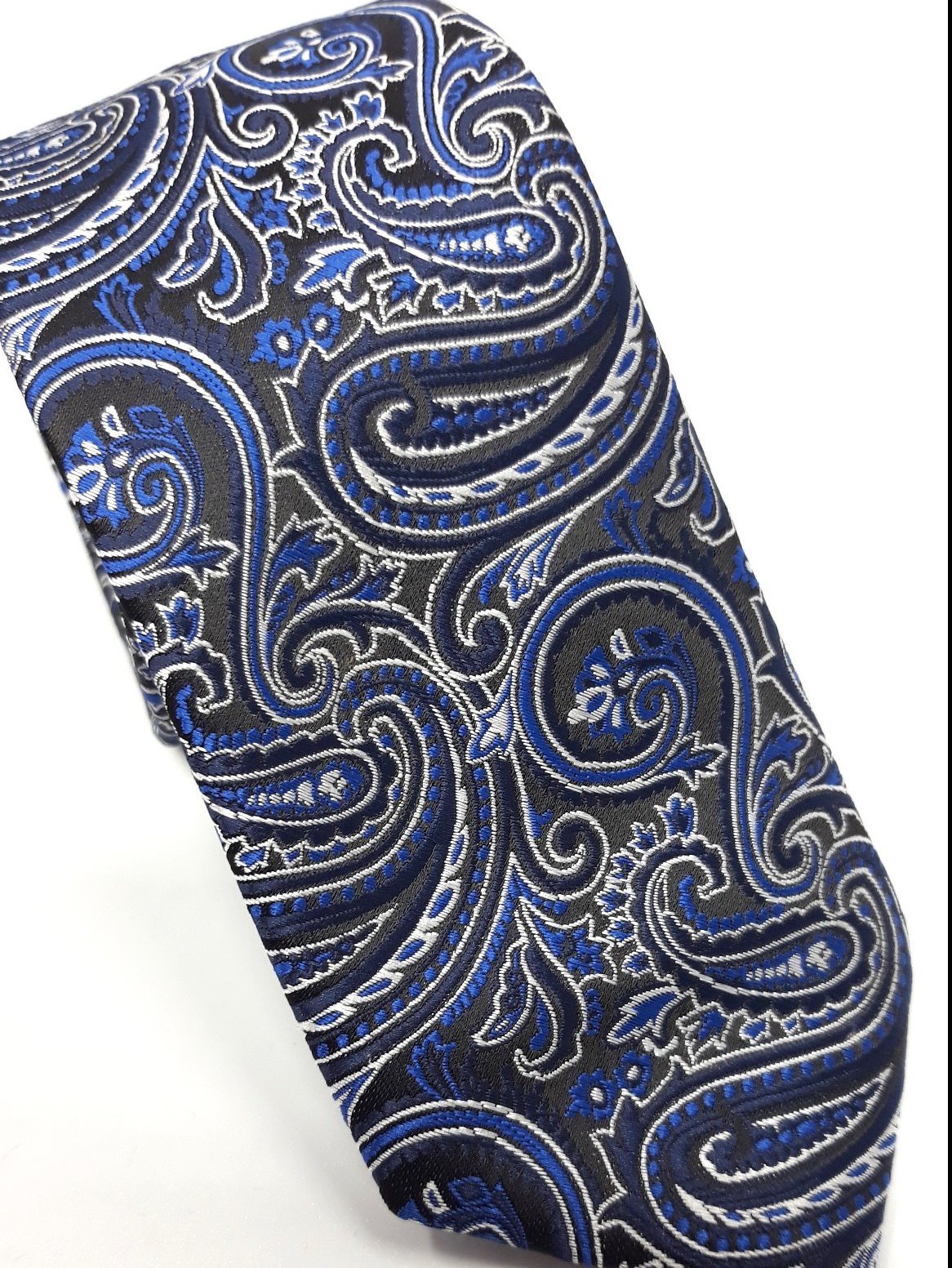Elegancki krawat męski firmy Piotr o klasycznym i modnym kroju, czarny w granatowo biały wzór.Krawat o klasycznym i modnym kroju, wykonany ze sztucznego jedwabiu. Jest on bardzo ważnym elementem ubioru, dzięki któremu każdy mężczyzna może wnieść do swojego stroju odrobinę koloru. Kompletując garderobę należy pamiętać, aby krawat tworzył spójny zestaw z marynarką lub koszulą. Jego unikatowy wzór z pewnością spełni swoją funkcję w połączeniu z różnymi tkaninami w kilku wariantach kolorystycznych. Ponadto wyraźne i mocne akcenty zdobnicze dodadzą charakteru i pozwolą wyróżnić się stylem. Krawat można dobrać zarówno do karnacji, garnituru jak i temperamentu.
