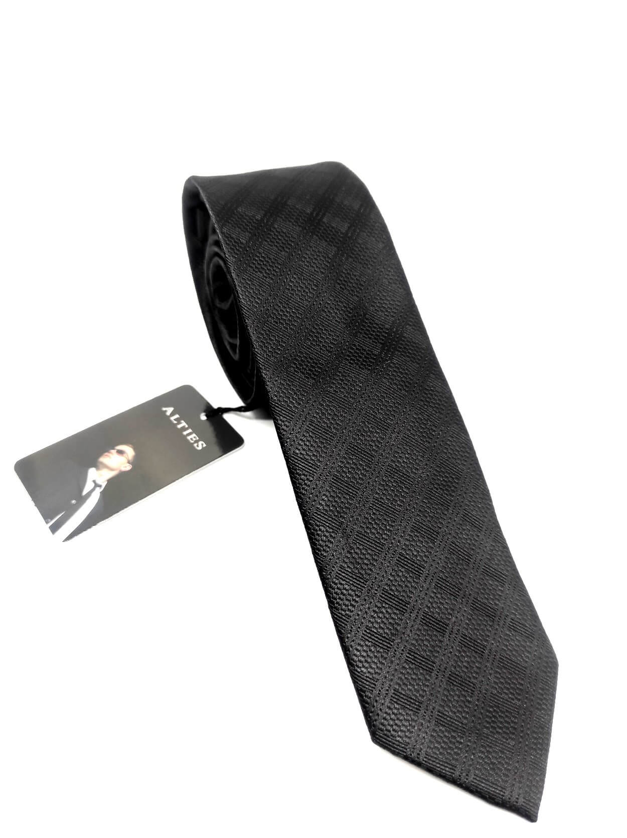 Elegancki krawat męski firmy Alties o klasycznym i modnym kroju,czarny tłoczony wzór. Krawat o klasycznym i modnym kroju, wykonany z microfibry. Jest on bardzo ważnym elementem ubioru, dzięki któremu każdy mężczyzna może wnieść do swojego stroju odrobinę koloru. Kompletując garderobę należy pamiętać, aby krawat tworzył spójny zestaw z marynarką lub koszulą. Jego unikatowy wzór z pewnością spełni swoją funkcję w połączeniu z różnymi tkaninami w kilku wariantach kolorystycznych. Ponadto wyraźne i mocne akcenty zdobnicze dodadzą charakteru i pozwolą wyróżnić się stylem. Krawat można dobrać zarówno do karnacji, garnituru jak i temperamentu.