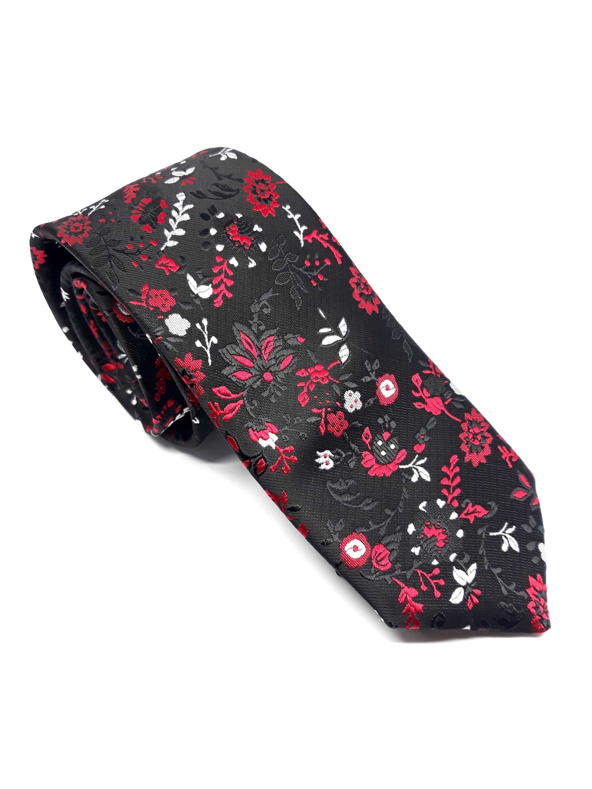 Elegancki Krawat Czarny w Kwiecisty Wzorek
