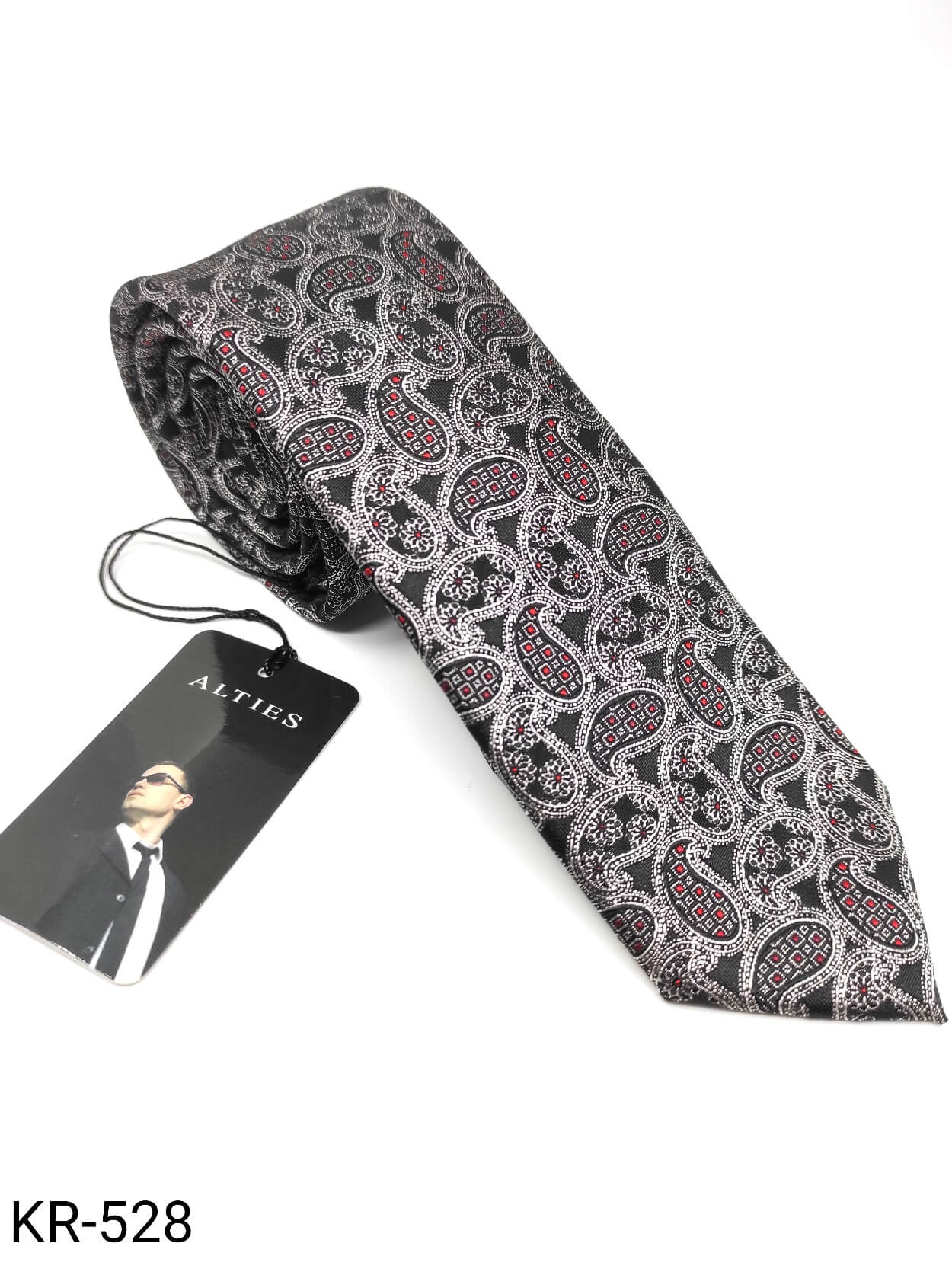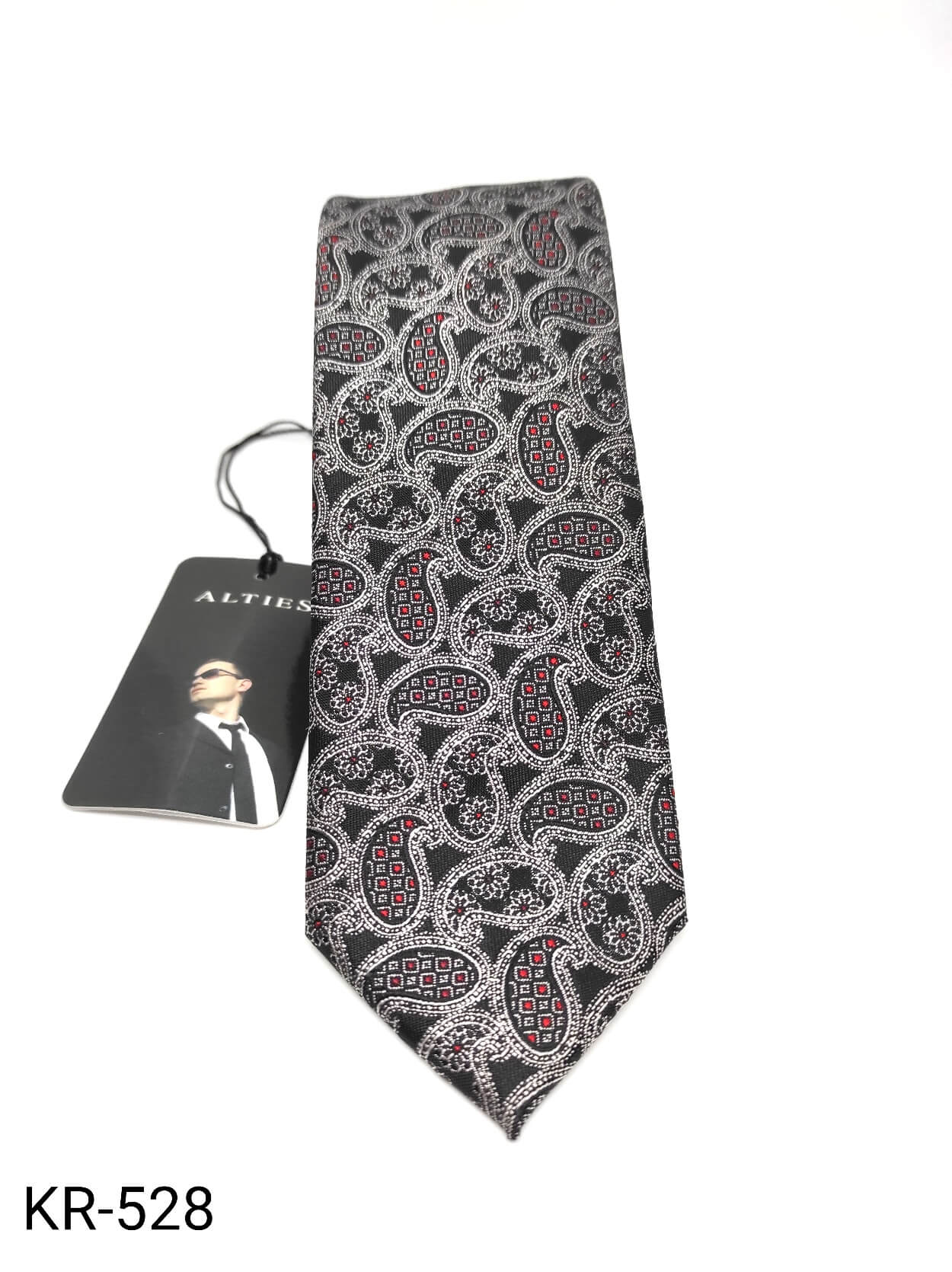 Elegancki krawat męski firmy Alties o klasycznym i modnym kroju, czarny w szary wzór. Krawat o klasycznym i modnym kroju, wykonany z microfibry. Jest on bardzo ważnym elementem ubioru, dzięki któremu każdy mężczyzna może wnieść do swojego stroju odrobinę koloru. Kompletując garderobę należy pamiętać, aby krawat tworzył spójny zestaw z marynarką lub koszulą. Jego unikatowy wzór z pewnością spełni swoją funkcję w połączeniu z różnymi tkaninami w kilku wariantach kolorystycznych. Ponadto wyraźne i mocne akcenty zdobnicze dodadzą charakteru i pozwolą wyróżnić się stylem. Krawat można dobrać zarówno do karnacji, garnituru jak i temperamentu.